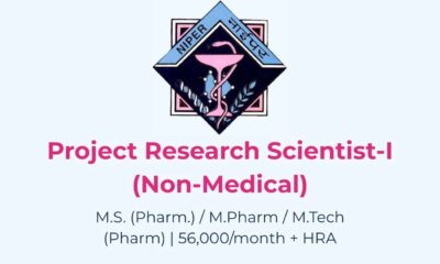 The prestigious National Institute of Pharmaceutical Education and Research (NIPER), Mohali has announced an exciting opportunity for Project Research Scientist-I (Non-Medical) under an ICMR-funded oncology biomarker...
