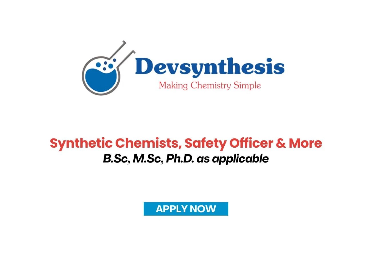 Devsynthesis India is Hiring for Synthetic Chemists, Safety Officer & More